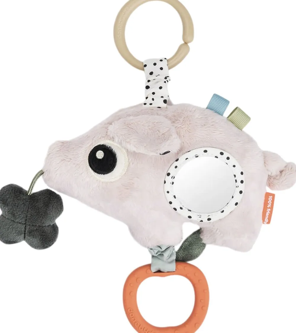 Lad din baby opdage sig selv i spejlet og aktivere rystefunktionen ved at trække i den æbleformede bidering