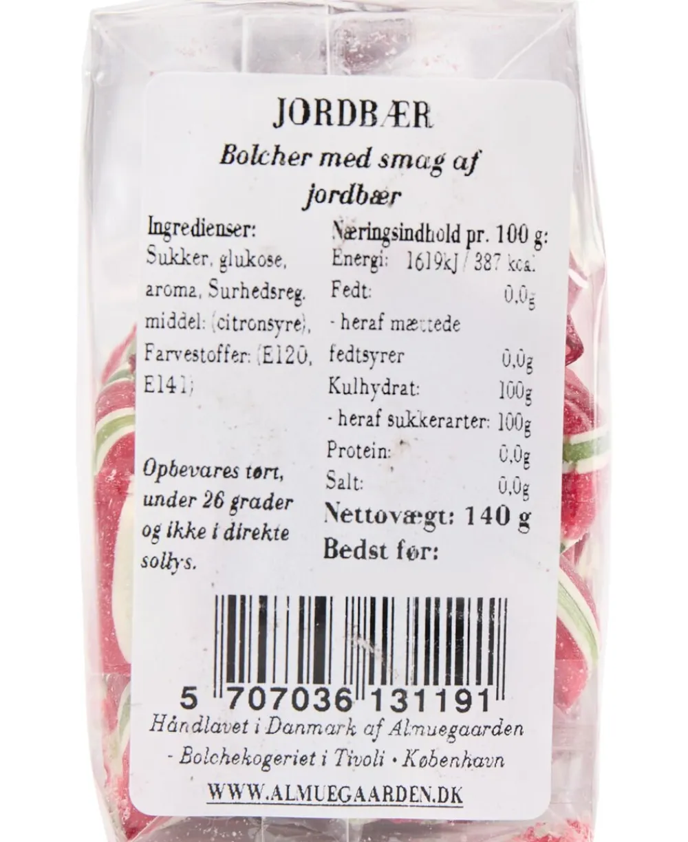 Almuegaarden Jordbær bolcher med smag af friske jordbær New