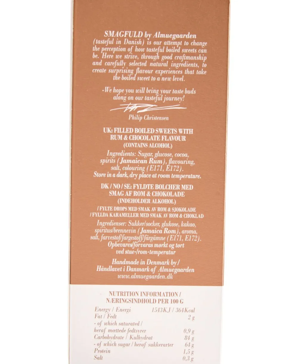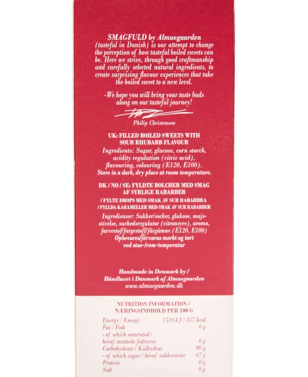 Gavepakning med 2 æsker – SMAGFULD by Almuegaarden (tasteful in Danish) is our attempt to change the perception of how tasteful boiled sweets can be. Here we strive, through good craftmanship and carefully selected natural ingredients, to create surprising flavour experiences that take the boiled sweet to a new level – We hope you will bring your taste buds along on our tasteful journey!