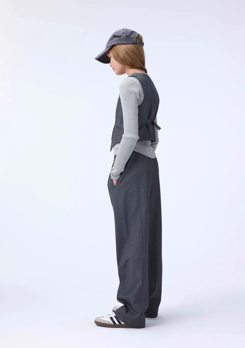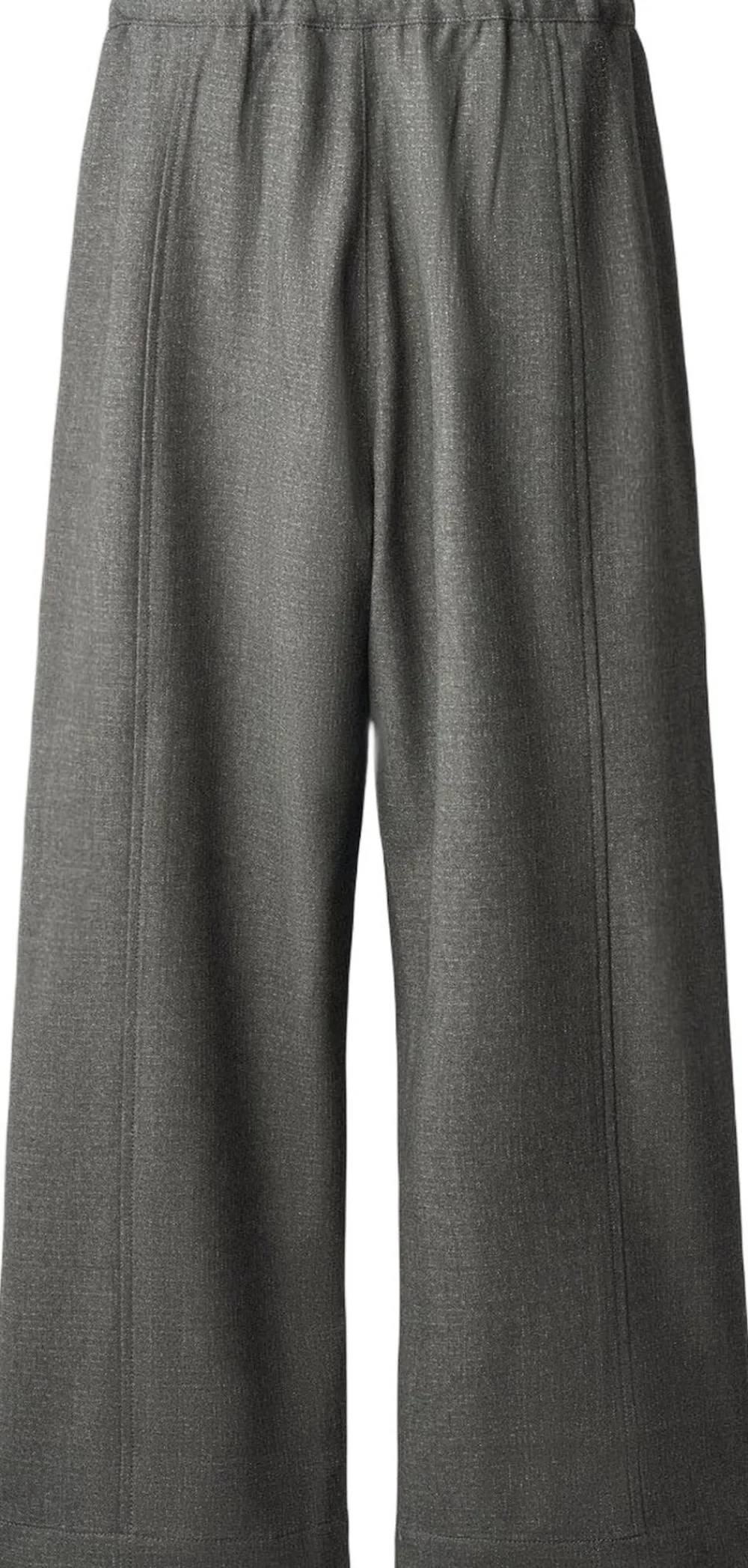 Disse grå flannelbukser fra Molo har en løs pasform, er let højtaljede med brede ben og læg, hvilket skaber en flot silhuet. De har to sidelommer og en flot syning ned langs benene foran og bagpå. Taljen har knap- og lynlåslukning samt en indvendig justerbar elastik for en god pasform.