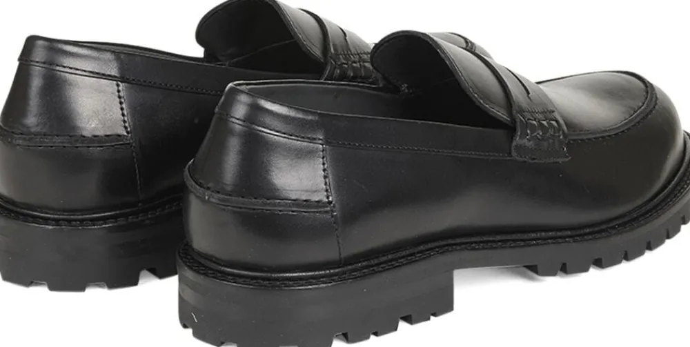 Klassisk Penny loafer i skind med sort tracksål.