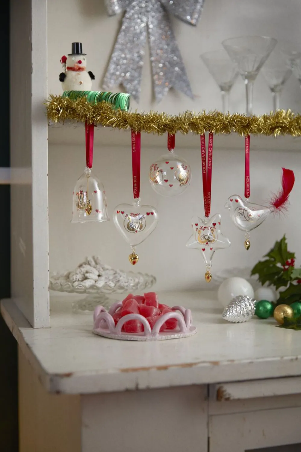 Holmegaard blev grundlagt i 1825. Og med årets glaspynt 2025 fejres 200-årsjubilæet for Holmegaard med udgangspunkt i svanen. Den stolte og elegante fugl er et symbol for Holmegaard, og sammen med små hjerter og en gren med røde vinterbær vil årets motiv smukt og dekorativt udstråle transformation, skønhed og skabe en atmosfære af poetisk glæde. Årets lille julehjerte 2025 fra Ann-Sofi Romme er 8 cm højt og kommer som altid i mundblæst glas. Farverne er holdt klassiske i rød og guld og med en afsluttende metallisk finish, og de små, røde hjerter skaber en hyggelig stemning til hjerternes fest. Den grafiske dekoration er helt i tråd med både juletraditioner og tidens farvetrend med matchende røde silkesnore, der indbyder til ophæng på træet, i vinduet eller på grangrene rundtomkring i hjemmet sammen med resten af den nostalgiske serie. Med sin klassiske juleserie for Holmegaard har Ann-Sofi Romme skabt en enkel og original julefortælling, der for mange er forbundet med genkendelsens glæde og refleksioner over julens romantiske øjeblikke. Hvert år har hun fortalt videre på det juleeventyr, som hun begyndte med sin klokke for Holmegaard tilbage i 1993.