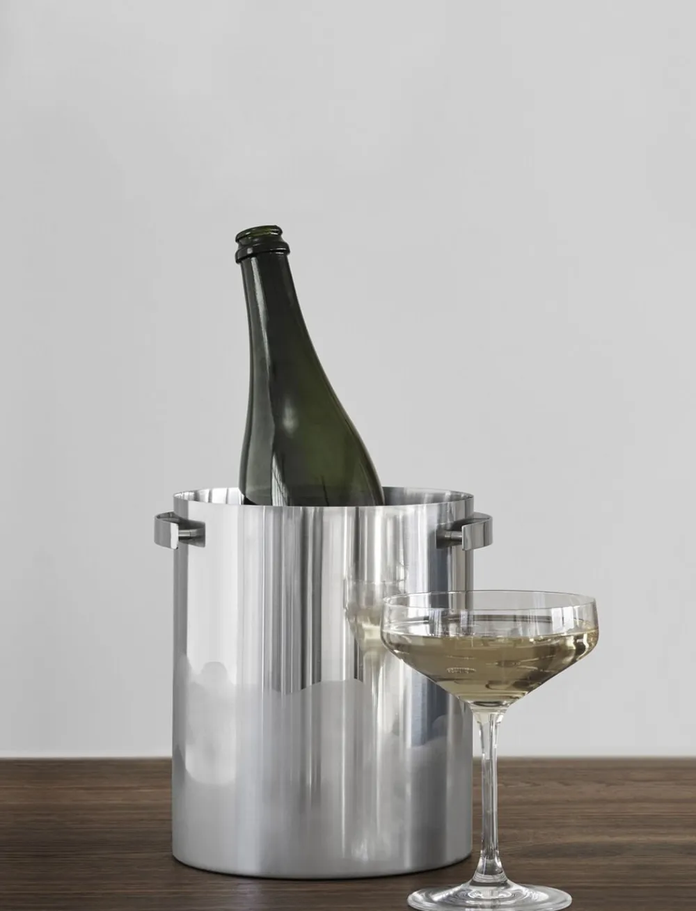 AJ champagnekøler, lanceret i anledning af Cylinda-lines 50 år jubilæum, er inspireret af Arne Jacobsens originale AJ vinkøler/isspand. Champagnekøleren har et stilrent formsprog og design, som holder årti efter årti og passer smukt med andre dele i barserien. Hold champagnen eller vinen kølig i den elegante AJ champagnekøler, som er let at håndtere med praktiske stålhåndtag.