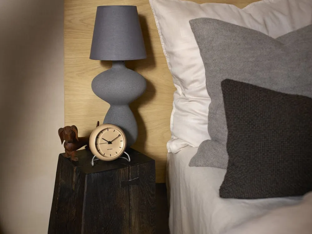 Arne Jacobsens City Hall bordur blev oprindeligt udviklet til Rødovre Rådhus i 1956. City Hall-uret er elsket for sit universelle udtryk, og derfor var det oplagt også at lave City Hall-uret som bordur. Udover at være et dekorativt indslag overalt i hjemmet har uret de nødvendige vækkeursfunktioner som alarm, snooze og lys. En sensor gør, at både lys og snooze aktiveres ved en let bevægelse med hånden over uret. Borduret er her vist i sandy beige.