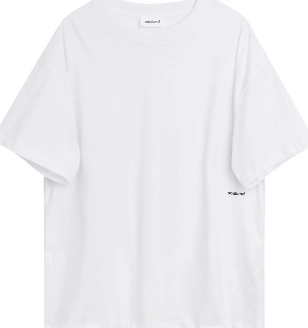 Ash er en almindelig t-shirt med 2×2 rib ved nakkeåbningen. Tøjet er en dobbeltnål, der er syet i armens hul, hals, bund og ærmekant. Der er et lille trykt Soulland-logo midt på Krop på venstre side. Den er lavet af 150 g/m2 jersey med en blød fornemmelse og er 100% bomuld (økologisk). Stoffet stammer fra Izmir, Tyrkiet, og tøjet er lavet i Izmir, Tyrkiet. Det vævede mærke er lavet af Oeko-Tex-certificeret polyester, og hængemærkerne er lavet af FSC-certificeret papir
