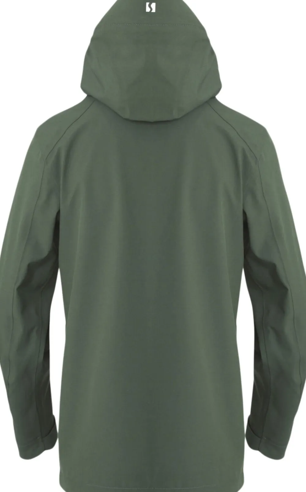 Jakken er skåret asymmetrisk så den er lidt længere bagpå og kan snøres ind. Dette sikrer dels en bedre bevægelighed til lårene når du går og cykler og sikrer samtidig at du ikke skiller på midten når du sidder på cyklen eller på hug i skoven.