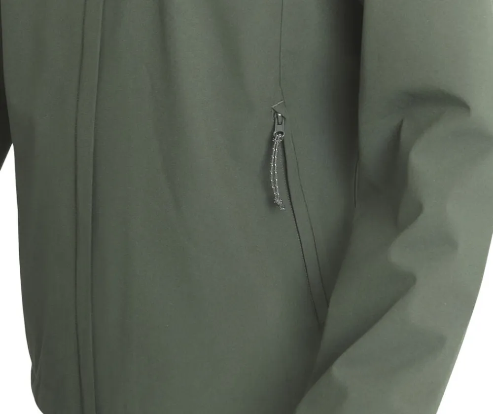 Jakken er helt vandtæt og åndbar og designet specifikt til kvinder i et rent og enkelt snit. Den har en let børstet overflade der gør den mere blød komfortabel og mere stofagtig så den faktisk også kan bruges som vindjakke på en grå dag hvor bygerne truer.