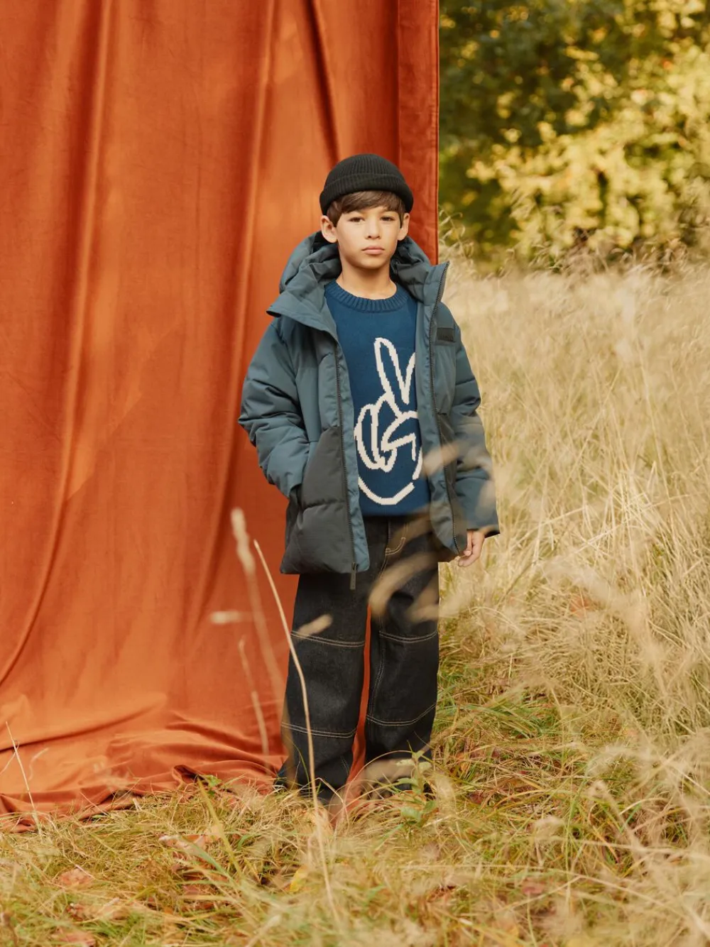 Disse mørkeblå oversize jeans fra Molo er lavet i rå denim med lyse stikninger ved knæene. Jeansene har 5 lommer, bæltestropper og en oversize pasform. Livvidden kan justeres med en indvendig elastik for optimal pasform til alle børn. Størrelser 92-134 har trykknap, mens størrelser 140-176 har en almindelig jeansknap. For en mindre løs pasform anbefales det at vælge en størrelse mindre, især hvis barnet er mellem to størrelser.