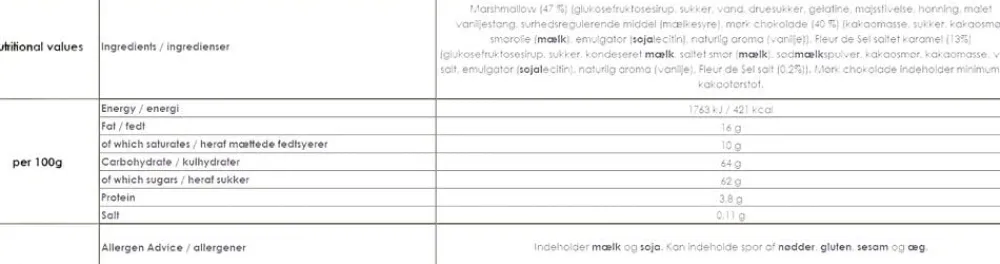 Sød og luftig skumfidus med vanilje og klistret saltkaramel overtrukket med tyk, mørk chokolade med det helt rigtige knæk. Enkeltindpakkede. 4 stk. i æsken.