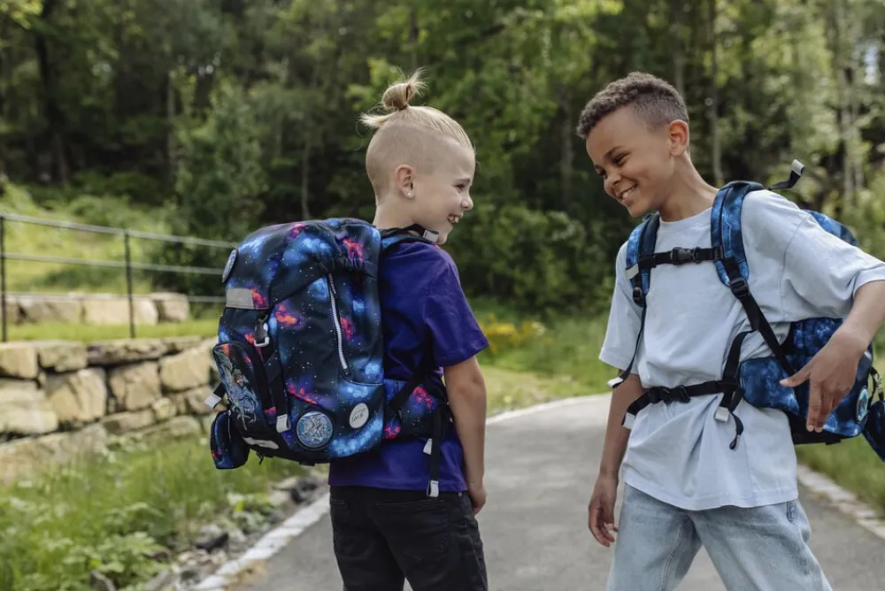 Sættet indeholder: Skoletaske, gymnastik/turtaske, onezip penalhus med fyld og ovalt penalhus, alt sammen i matchende motiver.