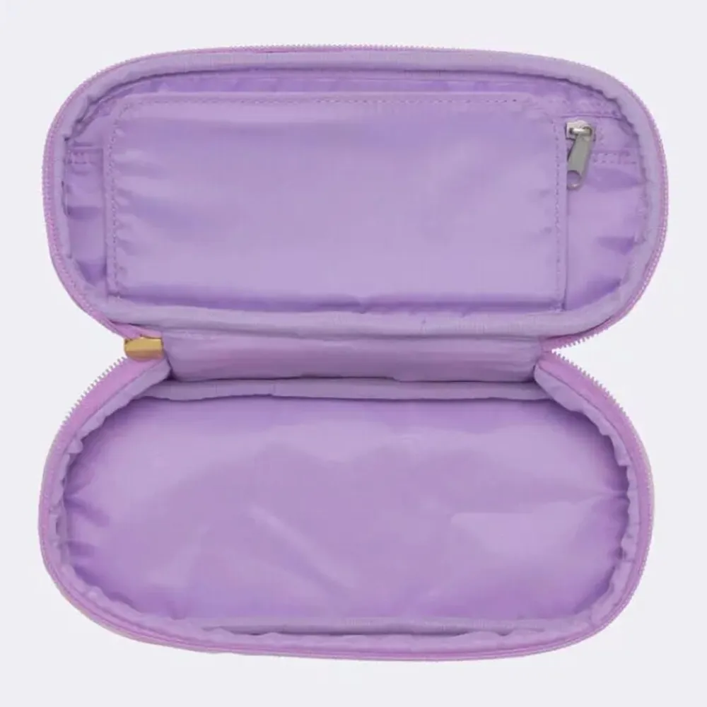 Det ovale penalhus er rummeligt og har en separat sektion til de mest brugte blyanter, og en lomme der lukkes med lynlås. Ydersiden er dekoreret med designs der matcher skoletasken, og penalhuset kommer med en aftagelig velcro button. Leveres uden indhold.