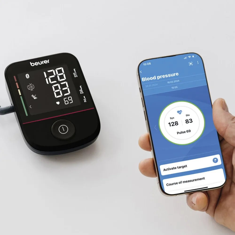 Det store og tydelig baggrundsbelyste XL LED display viser måleresultatet tydeligt. Målingerne kan overføres til Beurers HealthManager Pro app via bluetooth, så du kan overvåge dit blodtryk direkte fra din telefon.