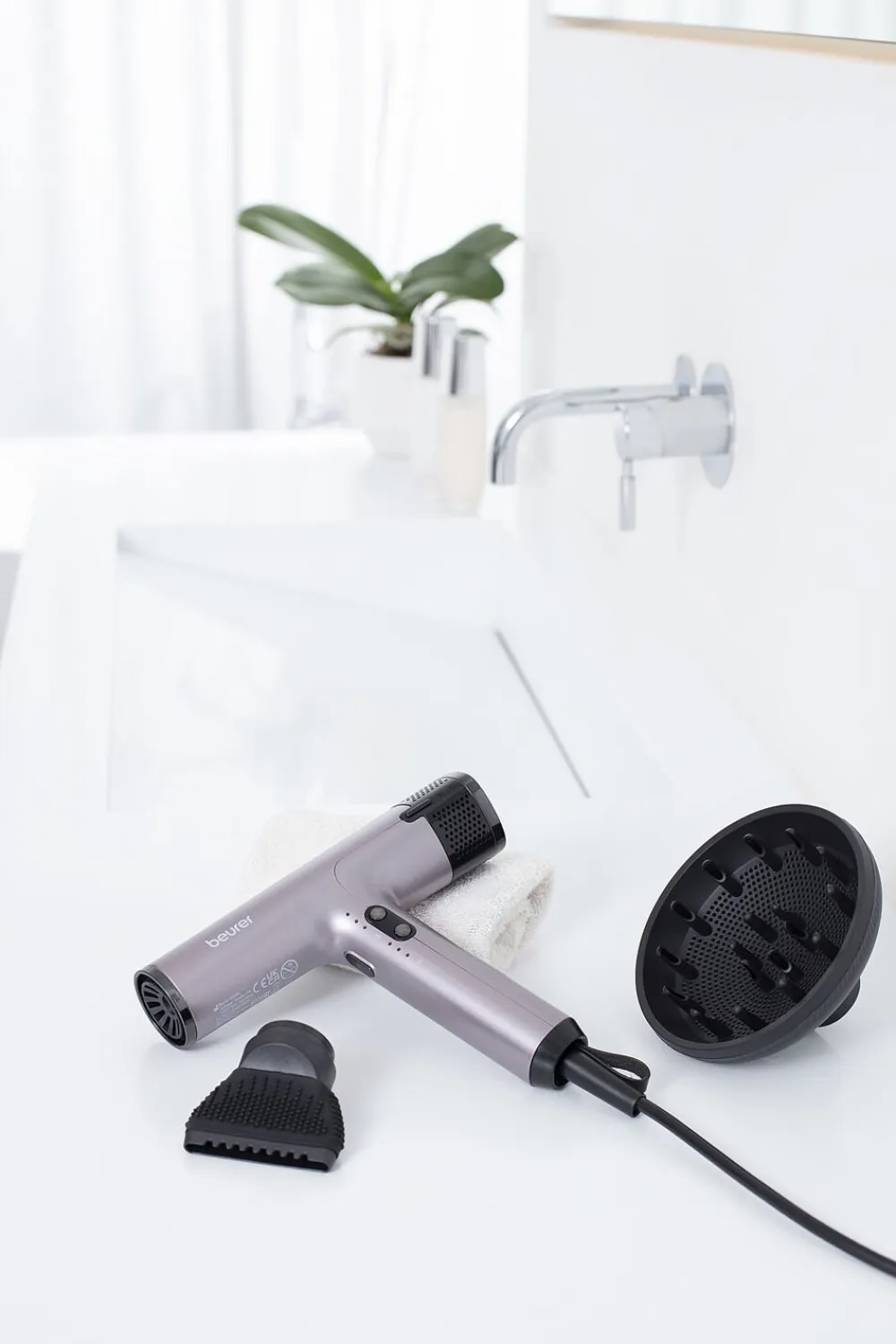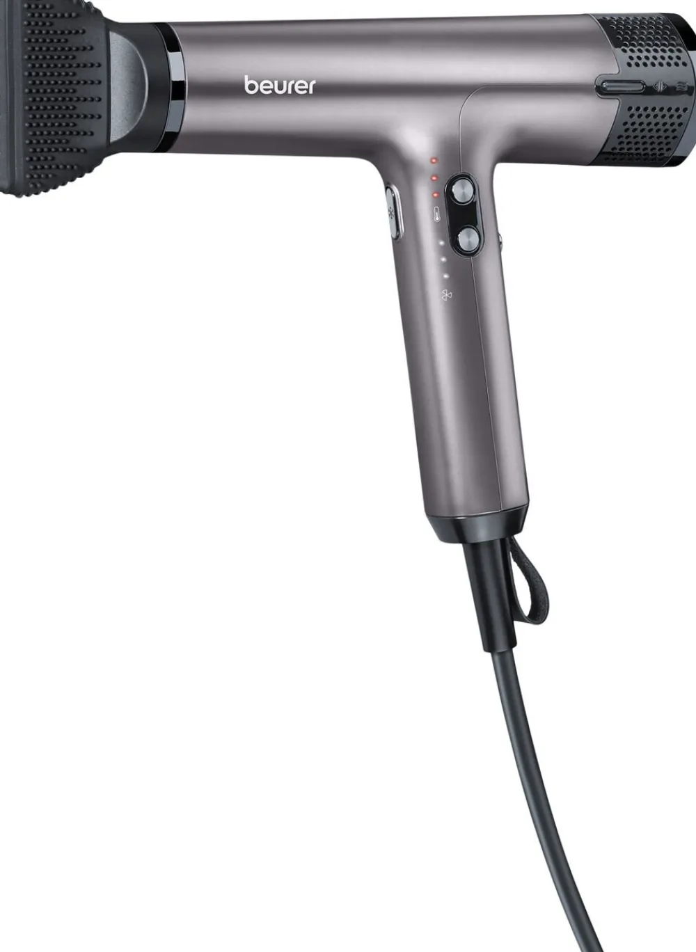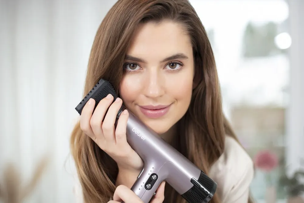 Beurers HC 100 Excellence er en hårtørrer i absolut topkvalitet. Den kan tørre dit hår op til 20% hurtigere end almindelige hårtørrere med DC-motor. Den ultralette vægt på blot 360 g (uden ledning) og den salonvenlige ledningslængde på 2,8 m gør den utrolig behagelig at arbejde med. Og ikke nok med det, så har den også et imponerende lavt lydniveau og er energibesparende.