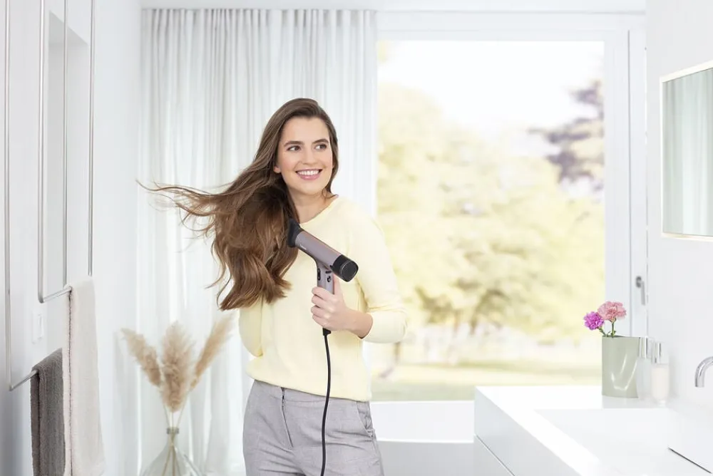 Hårtørreren er udført i et kompakt design med ophængsløkke til opbevaring og et aftageligt filter med automatisk filterrensningsindikator efter 1500 minutters brug.