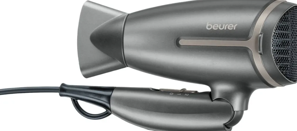Du får en kraftfuld og kompakt rejsehårtørrer, som kan foldes sammen