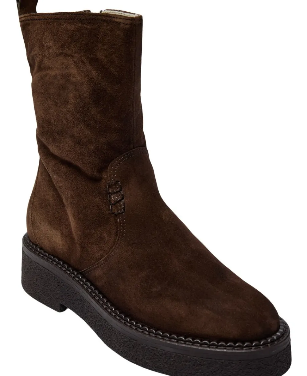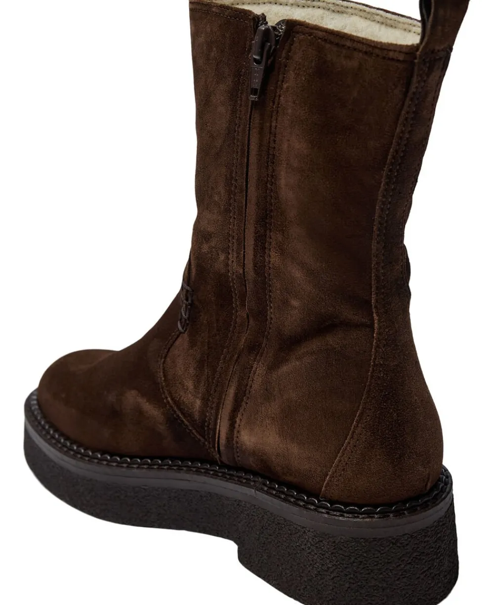Kort støvle fra Billi Bi i en lækker ruskindskvalitet. Støvlen er enkel i modellen med en afrundet snude, lynlåslukning på indersiden samt en grov, præget sål. Et par klassiske støvler af den bedste kvalitet.