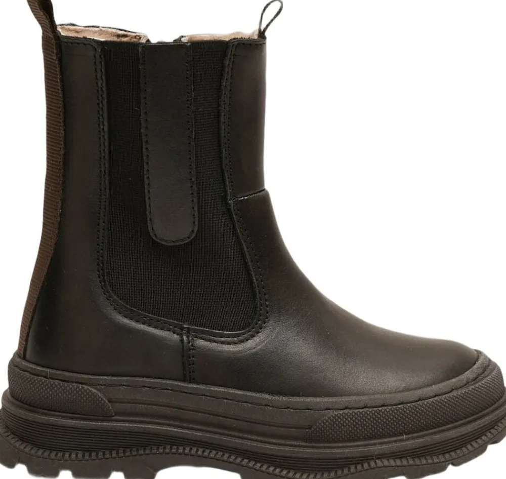 ‘mila lamb is a chunky boot with both style and flair. Featuring a cool, rugged silhouette and a warm lambskin lining, it combines comfort and style, making it a perfect choice for cold days.___ – Made from 100% LWG-certified leather, these shoes support responsible leather production and eco-friendly tanneries – The soft 100% lambskin lining and insole offer natural warmth and comfort, and the removable sole makes it easy to adjust and care for the boot – With soft and breathable leather as the outer material, it’s a natural choice for quality, durability, and an exclusive look – The zipper and decorative elastic make the shoe easy to put on and take off, ensuring a snug fit – The lightweight, non-slip outer sole provides a soft, springy feel, promoting natural movement and comfort