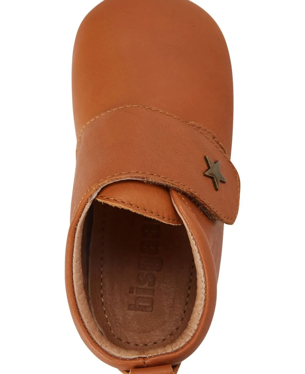 Hjemmesko, velcrolukning. Produceret i 100% naturligt læder, skindfoer og en blød sål af ruskind og skridsikker gummi. Fast hælkappe giver optimal støtte til foden.