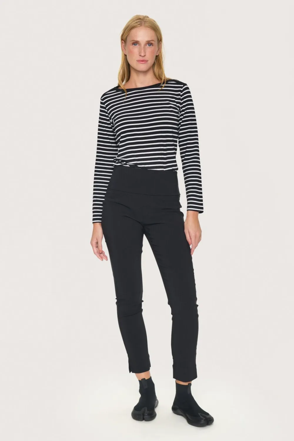 BASIC STRETCHBUKSER MED FOLDET BÆRESTYKKE LILLE SLIDS VED FODEN LÆNGDE MÅLT FRA TALJEN FOR STR. M = 101,50 CM KAN UDVIDES OP TIL EN HALV STØRRELSE