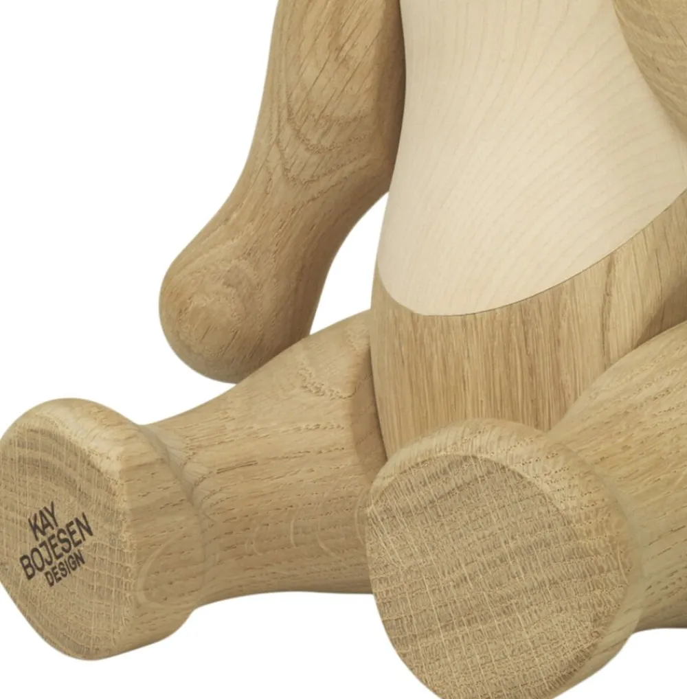 Et stort og stærkt ikon i en endnu større udgave. Kay Bojesens berømte Bjørn i den store variant måler hele 40 cm i højden en størrelse der virkelig giver designet opmærksomhed og lader de venlige, bløde og smilende linjer, som Kay Bojesen er kendt for, komme til sin ret. I denne størrelse står Bjørnen helt klart og enkelt i sit ikoniske udtryk og unikke formsprog. Den store Bjørn er skabt i hånden med kærlighed og omhyggelighed på præcis samme måde som siden begyndelsen af 50erne, hvor Bjørnen kom til verden med sine karakteristiske åbne arme. Bjørnen er skabt i egetræ og ahorn. Træet står ubehandlet og dets iboende liv, åretegninger og karakteristika kommer smukt til sin ret i den store version af Bjørnen, hvor alt er skaleret op. Den store Bjørn er en oplagt gaveidé til alle, der sætter pris på klassisk dansk design uanset om det er til det store jubilæum eller den runde fødselsdag. Bjørnen repræsenterer styrke, mod og tætte familiebånd og minder os om at være tro mod os selv og møde verden med venlighed og et åbent hjerte.