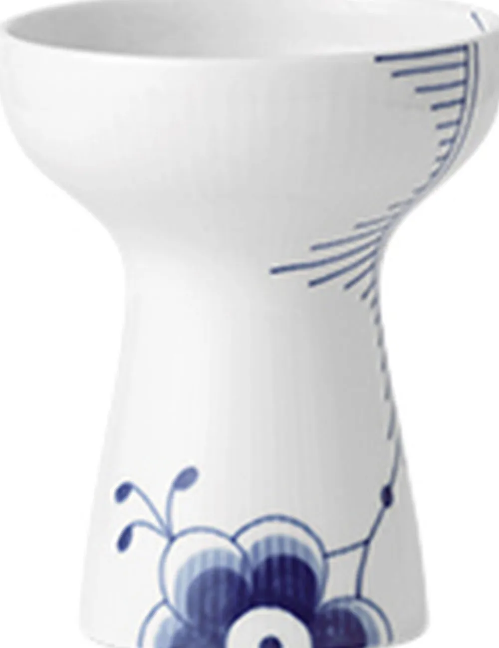 Til foråret får Blå Mega Riflet-stellet et nyt medlem i form af den smukke åbne vase i to størrelser. Med et nyt og unikt formsprog er vasen smuk til både klassiske og moderne blomsterdekorationer, og de to størrelser af vasen kan enten optræde som et smukt par eller som enkeltstående små kunstværker.