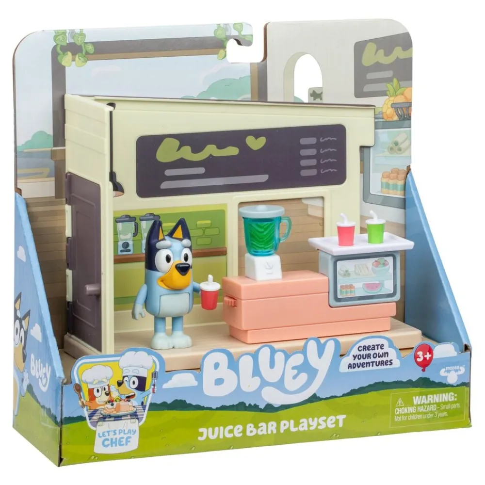 Sjovt Bluey Juicebar mini-legesæt Der er naturligvis både juicemixer og juicekopper i baren, samt en indgangsdør Inkl Bluey figur 3 år