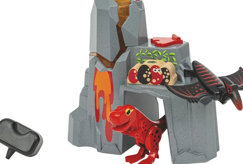 Vulkanen buldrer og brager 36092 Aktiv vulkan med dinosaurer er ved at gå i udbrud Skab episke forhistoriske eventyr med legesættet med dinosaurtema og figurer med dine BRIO World-togbaner Gør vulkanen levende ved at trykke på den lille knap på toppen for at aktivere det glødende lavalys, vulkanlydene og den berøringss ikre damp, der blæser op fra krateret Oplev også vulkanen bryde ud, mens T-Rexen troner stolt på toppen med udsigt over sit rige Bruger 2 stk AA-batterier (ikke incl) Fra 3 år