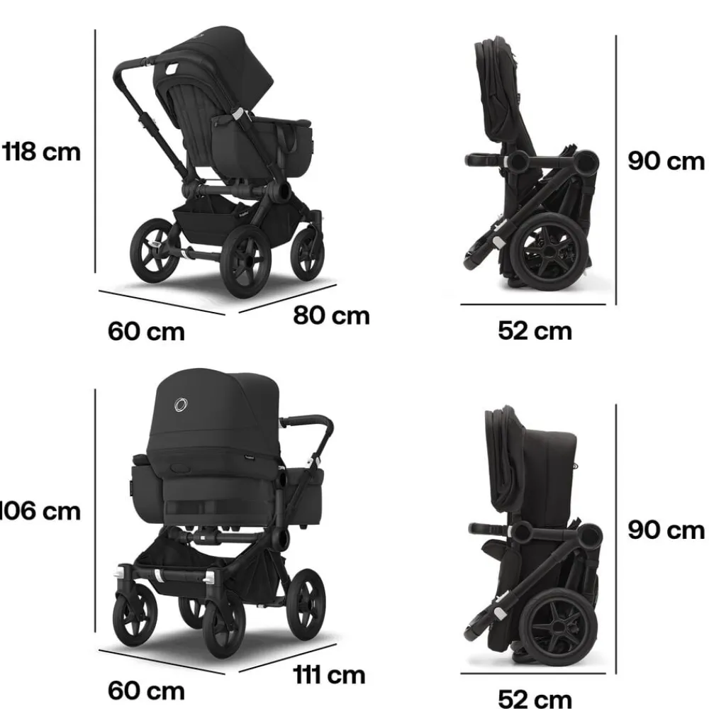 Hvis du overvejer at udvide din familie, kan du nemt konvertere den med blot 3 klik, så den kan bære 2 børn. Uanset hvilken konfiguration du vælger, er Bugaboo Donkey 5 lille nok til at passe gennem standarddøråbninger,