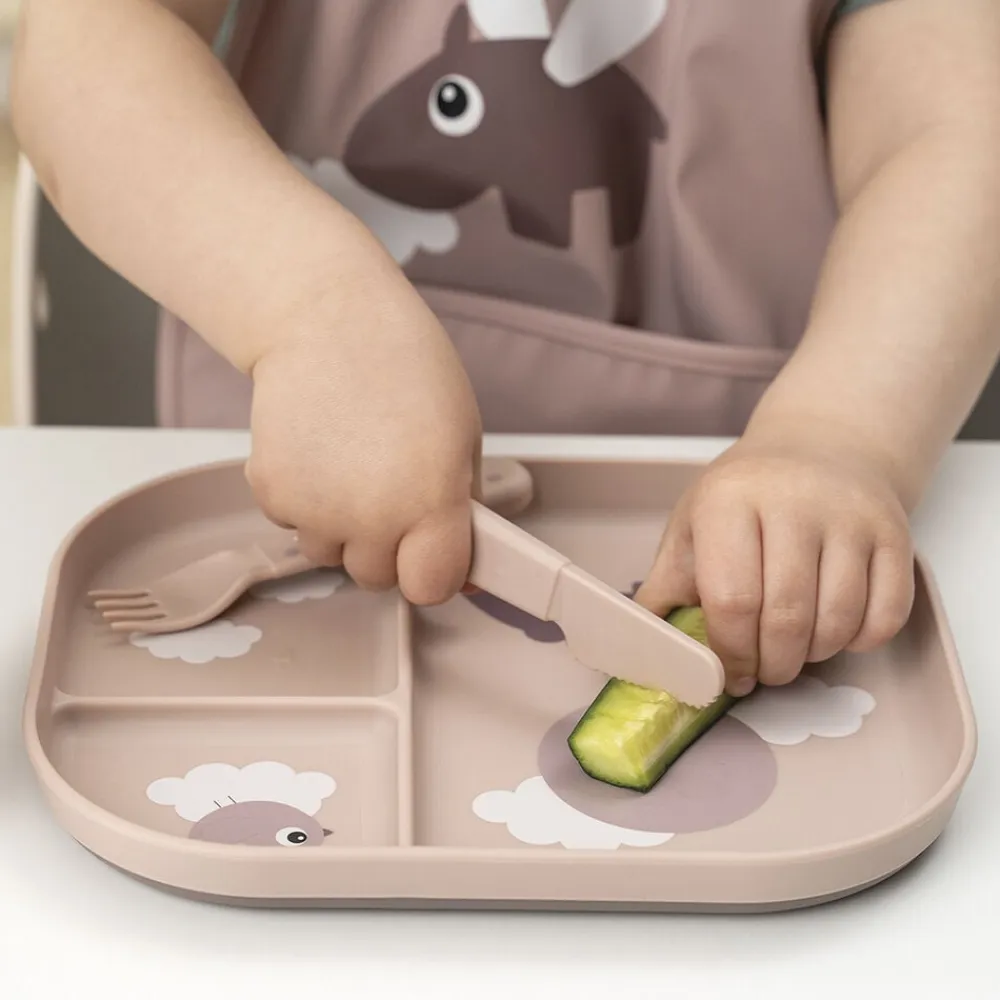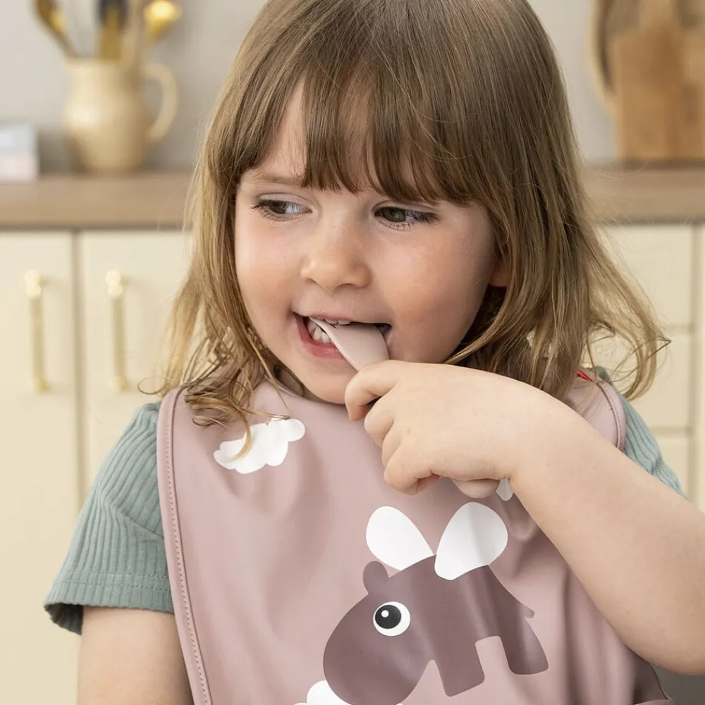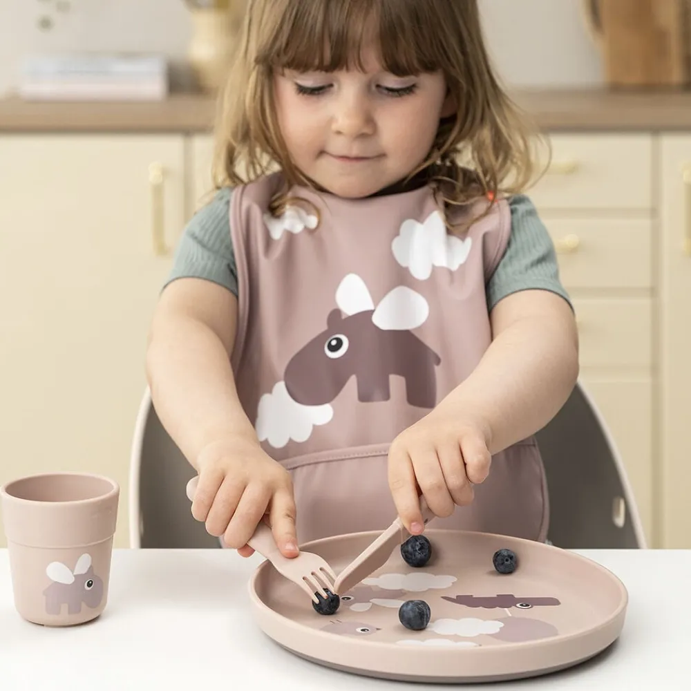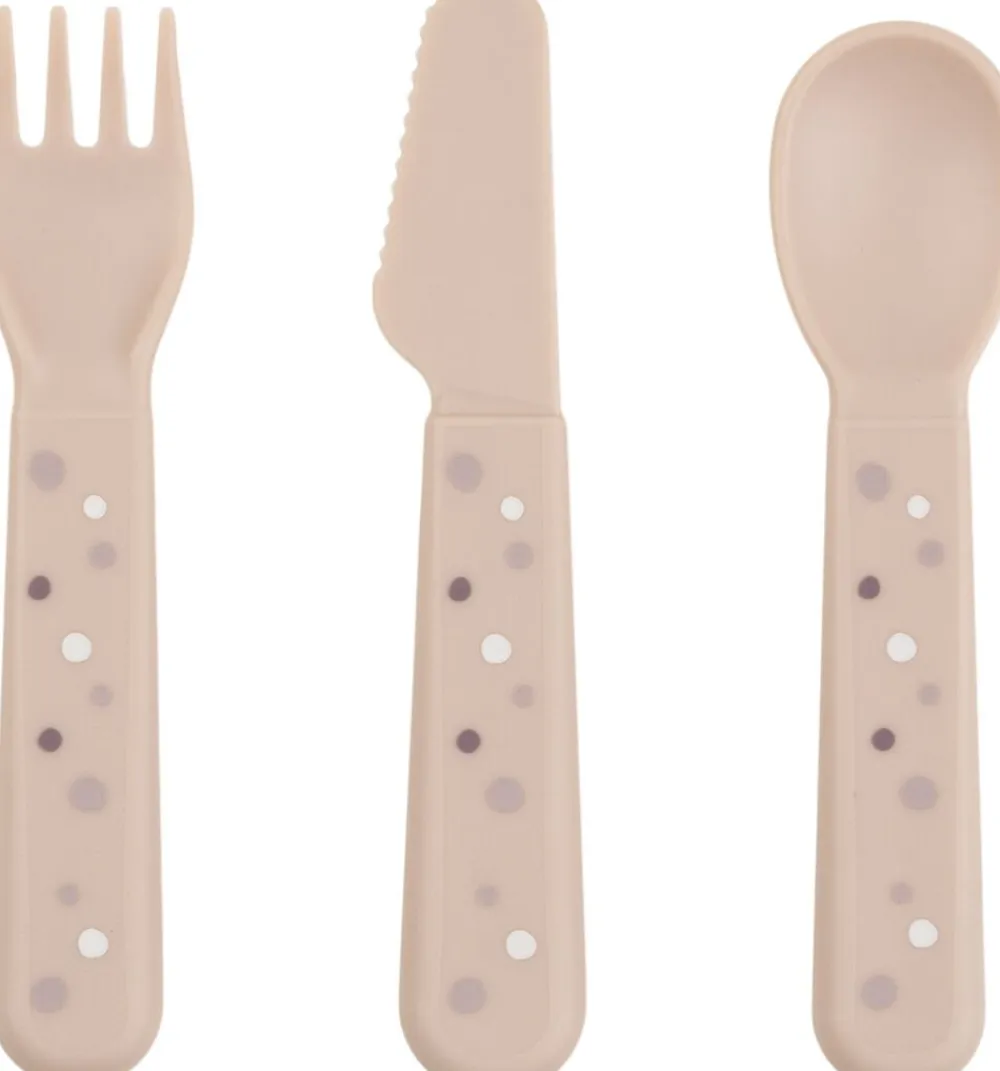 Foodie bestiksættet med Happy dots har afrundede kanter, som gør det sikkert og behageligt for dit barn at øve sig i at spise med bestik. Børnebestiksættet passer perfekt til små hænder og er gennemtestet af børn. Det søde bestiksæt til babyer og tumlinger består af en ske, en gaffel en og kniv. Efter utallige familiemiddage og børnefester kan bestikket affaldssorteres som plast og genanvendes til fremstilling af nye hverdagsprodukter. Det søde, pudderfarvede bestiksæt er pyntet med legende Happy dots, som gør ethvert måltid til en fest. Bestikket har en mat, silkeblød overflade og matcher resten af Foodie kollektionen.