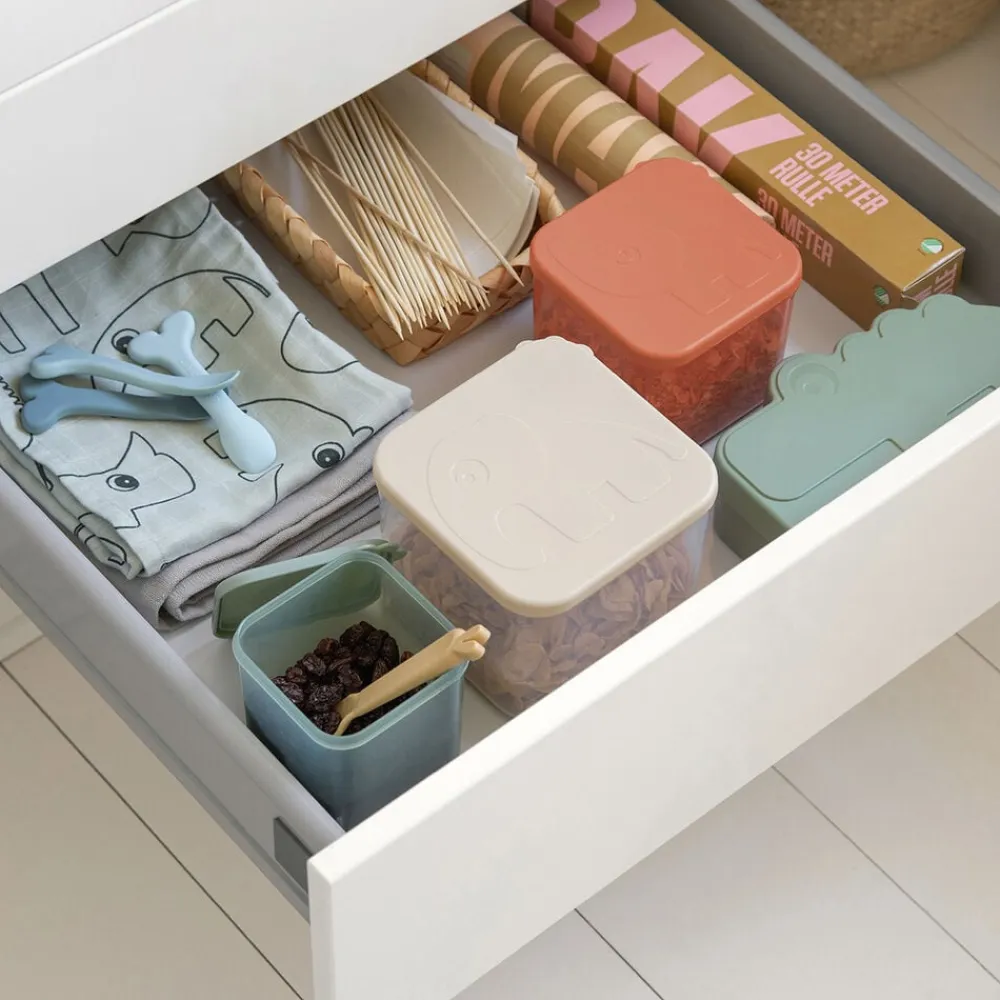 Brug disse praktiske madopbevaringsbøtter til at organisere køkkenskuffen eller brug dem til at pakke din frokost i. Det søde sæt består af tre bøtter i tre forskellige størrelser – perfekt til at gemme og medbringe alle favoritterne. De semitransparante bøtter kan bruges af hele familien. Lågene har søde krokodilletakker, der gør det nemt at åbne bøtterne. Bøtterne er velegnede til brug i fryser, mikrobølgeovn og opvaskemaskine, og de fine farver matcher vores madkasser. Pak familiens favoritter i disse cool, gennemsigtige madopbevaringsbøtter i papaya, grønne og sandfarvede nuancer. Lågene har søde Croco krokodilletakker for nem åbning og er prægede med fine motiver af Elphee.