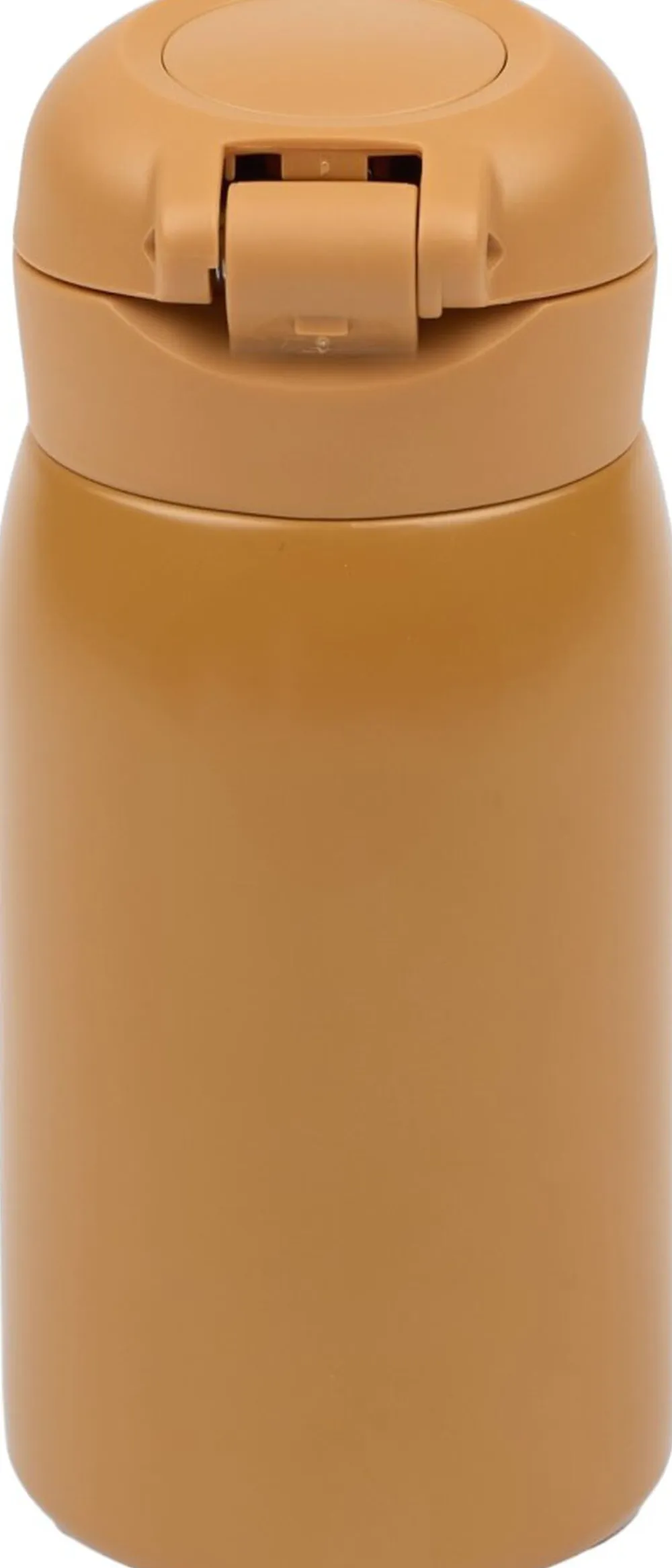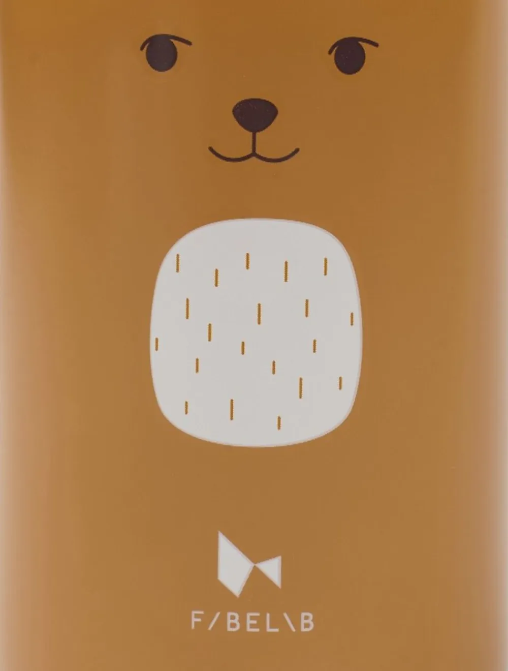 Fabelabs nye vandflaske – Bear – Oker er perfekt at tage med på farten eller til børnehave og skole. Vandflasken er nem for de små at bruge og drikke fra med den lette, men sikre åbning, der forhindrer, at vandflasken åbner sig inde i skoletasken. Der er tilføjet et drikkespræk for sikker drikning, og den passer perfekt ind i siderne på vores nye Rygsæk – Stor. Vandflasken rummer 320 ml og er lavet af 18/10-klasse rustfrit stål og BPA-fri PP plastiklåg og silikoneforsegling. Vandflasken holder drikkevarer kolde i 24 timer og varme i 10 timer og modtager eller afgiver ikke smag ved brug. Pleje og brug: Vask vandflasken i koldt eller lunt vand med en blød svamp eller børste for at rense indersiden. Hold vandflasken ren for at undgå lugt, og opbevar vandflasken uden skruet på låget for optimal tørring. Til grundig rengøring kan du fylde vandflasken med varmt vand indeholdende 10 % eddike i 30 minutter og endelig rengøre med rent vand og en blød børste. Advarsel: Brug den ikke til kulsyreholdige drikkevarer, saltede supper osv. Rengør ikke vandflasken i opvaskemaskinen, da dette vil reducere den termiske effekt. Brug ikke slibemidler eller skuremidler. Mad sikker – EU-standard, LFGB – Fødevarekvalitetstest, DG CCRF – Fødevarekvalitetstest Ikke egnet til børn under 4 år