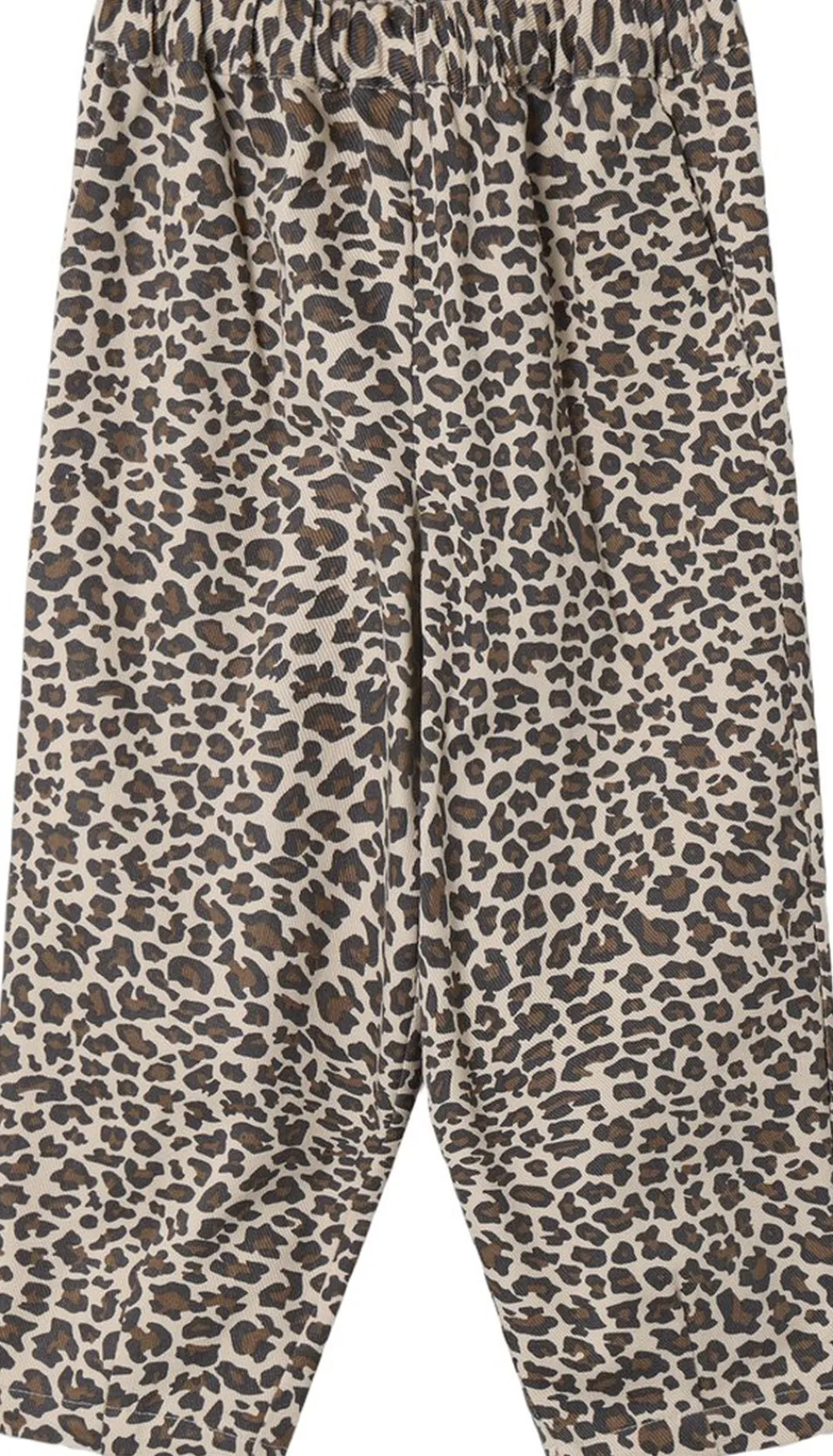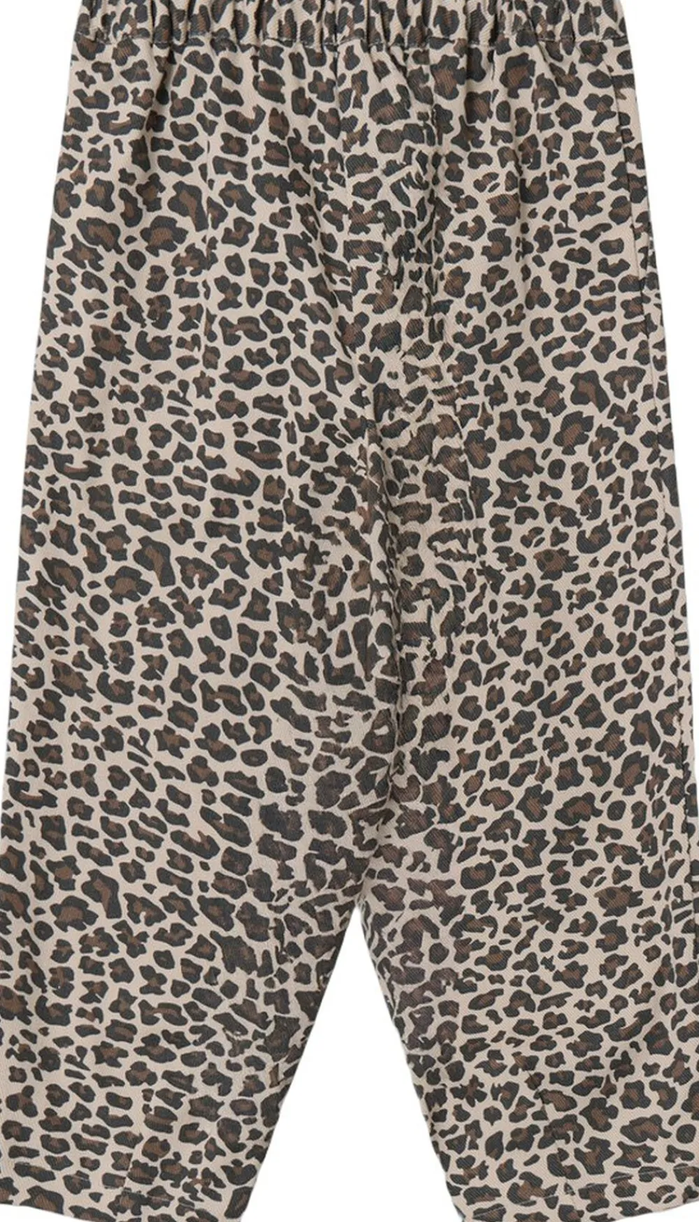 Lange bukser med leopard print. Bukserne har elastik i taljen, lommer i sidesømmen til at gemme de spændende ting barnet finder på sin vej.