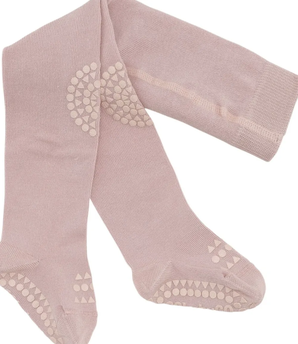 GoBabyGo kravle strømpebukser har special designede gummi dutter på knæene, under fødderne og ovenpå tæerne, så barnet ikke glider når det skal i gang med at kravle og gå.Fordele:Gummi dutter på knæ, under fødderne og ovenpå tæerne giver bedre stabilitet på glatte overfladerStyrker barnets motorik, balance og selvsikkerhedLavet i blødt bomuldsstræk med en bred ribkant, der garanterer god bevægelighed, og som føles behagelig på hudenEkstra slidstærke på knæeneTestet og godkendt for sundhedsskadelige stofferDansk design produceret i Europa og Oeko-tex Standard 100 CertificeretGiv barnet en god start når det skal i gang med at kravle og tage sine første skridt. Strømpebukserne er lavet i blødt bomuldsstræk og har en bred ribkant, der garanterer god bevægelighed, og som føles behagelig på huden. De skridsikre såler samt gummidutterne på knæene og ovenpå tæerne gør strømpebukserne ekstra slidstærke og gør det samtidig muligt for barnet at kravle rundt uden at glide på glatte overflader. Stabiliteten på alle overflader styrker barnets motorik, balance og selvsikkerhed. De skridsikre gummidutter giver støtte både når barnet kravler og forsøger at rejse sig og tage sine første skridt. GoBabyGo kravle strømpebukserne er testet og godkendt for sundhedsskadelige stoffer og er Oeko-tex Standard 100 Certificeret.Oeko-Tex Standard 100 er en garanti for, at varen er kontrolleret for indhold af sundhedsskadelige kemikalier og der kun er brugt human-økologiske tekstilvarer, som ikke har skadelig effekt på menneskers sundhed og helbred. De skridsikre silikone dutter er også godkendt af denne standard.ProduktinformationMateriale: 75% bomuld, 20% Polyamid, 5% Elastan Størrelser: 6-12 &: 12-18 måneder De skridsikre gummidutter er lavet af silikone og er fri for ftalater Vask på vrangen