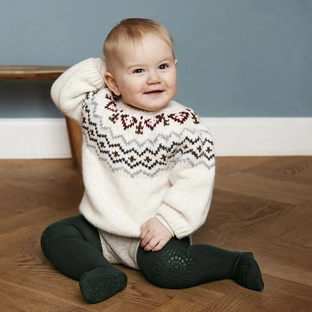 GoBabyGo kravle strømpebukser har special designede gummi dutter på kn