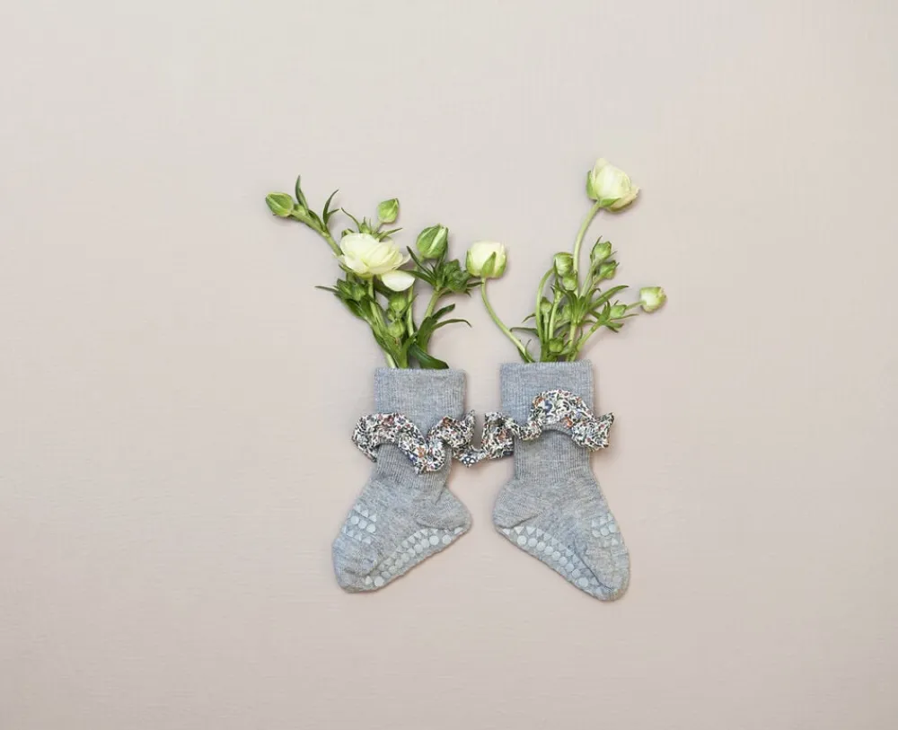 GoBabyGo strømper med skridsikre såler og gummidutter på tæer er til børn, der elsker at kravle, gå og løbe uden at glide. Velegnet som sutskoFordele:Gummi dutter under fødderne og ovenpå tæerne giver stabilitet på glatte overfladerStyrker barnets motorik, balance og selvsikkerhedLavet i tykt, lækkert og åndbart bomuldHar ekstra langt skaft og ekstra elastik ved anklen, så de ikke falder nemt afVelegnet som sutsko / hjemmeskoTestet og godkendt for sundhedsskadelige stofferDansk design produceret i Europa og Oeko-tex Standard 100 CertificeretSkridsikre strømper fra GoBabyGo er lavet i tykt, lækkert og åndbart bomuld, der holder barnets fødder varme og samtidig hjælper når barnet er i bevægelse. Det bløde lag af garn, som er på indersiden af vores tykke skridsikre strømper føles blødt og behageligt på huden.Gummi dutterne sikrer at barnet ikke glider på glatte overflader og gør dem også meget velegnet til sutsko. Hjemmesko med en hård sål kan virke hæmmende for små fødders udvikling, og vi anbefaler derfor, at man bruger skridsikre strømper, så de små fødder har mulighed for at udvikle sig og vokse korrekt. GoBabyGo skridsikre strømper i bomuld er derfor ideelle til at styrke dit barns motorik og give det den rette støtte under aktivitet og bevægelse.GoBabyGo strømper med skridsikre såler og gummidutter på tæer er til børn, der elsker at kravle, gå og løbe.GoBabyGo skridsikre strømper er testet og godkendt for sundhedsskadelige stoffer og er Oeko-tex Standard 100 Certificeret.Oeko-Tex Standard 100 er en garanti for, at varen er kontrolleret for indhold af sundhedsskadelige kemikalier og der kun er brugt human-økologiske tekstilvarer, som ikke har skadelig effekt på menneskers sundhed og helbred. De skridsikre silikone dutter er også godkendt af denne standard.Produktinformation Materiale: 80% bomuld, 17% Polyamid, 3% Elastan Størrelser: 6-12 måneder, 1-2år, 2-3år &