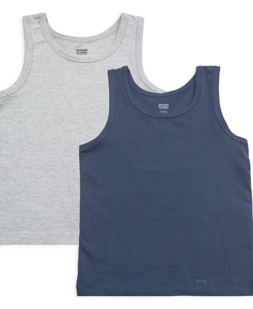2-pak undertrøjer fra Magasin du Nord Collection i den blødeste kvalitet af økologisk, GOTS-certificeret bomuld. Undertrøjerne er enkle i modellen med brede skulderstropper samt smalle ribkanter, der tilsammen sikrer en komfortabel pasform. En pakke med de mest komfortable undertrøjer i den lækreste kvalitet. Økologisk bomuld kommer fra landbrug, hvor man arbejder med naturen på en måde så både økosystemer og biodiversitet opretholdes. Det betyder, at der ikke benyttes giftige kemikalier, at vandforbruget begrænses og at der i højere grad anvendes regnvand i produktionen. Når du vælger økologisk bomuld, er du derfor med til at værne om jordens ve og vel. Bakito skifter navn til Magasin Du Nord Collection nyt navn og samme gode produkter. Vores egen børnekollektion er fortsat udviklet ud fra ambitionen om, at vi vil give børn behagelige hverdagsfavoritter i lækre bløde økologiske og recyclede kvaliteter, som er produceret med respekt for mennesker og natur.
