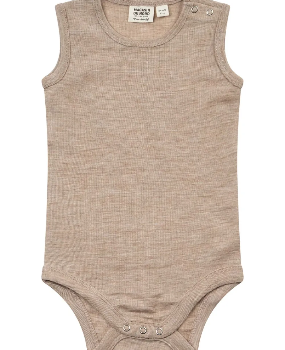 Body fra Magasin du Nord Collection i den blødeste kvalitet af 100% merinould med RWS- og OEKO-TEX® STANDARD 100-certificering. Bodyen har brede skulderstropper, en rund halsudskæring samt trykknapper i kilen og ved den ene skulder. En skøn body i en lækker kvalitet.