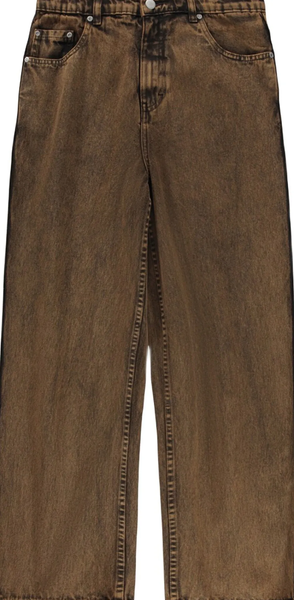 Disse denimjeans fra Molo er lavet i økologisk bomuld med en sort og rød vask. Bukserne har 5 lommer og en bred pasform, inspireret af skatermiljøet. Livvidden kan justeres med en indvendig elastik for optimal pasform til alle børn. Størrelser 92-134 har trykknap, mens størrelser 140-176 har en almindelig jeansknap.
