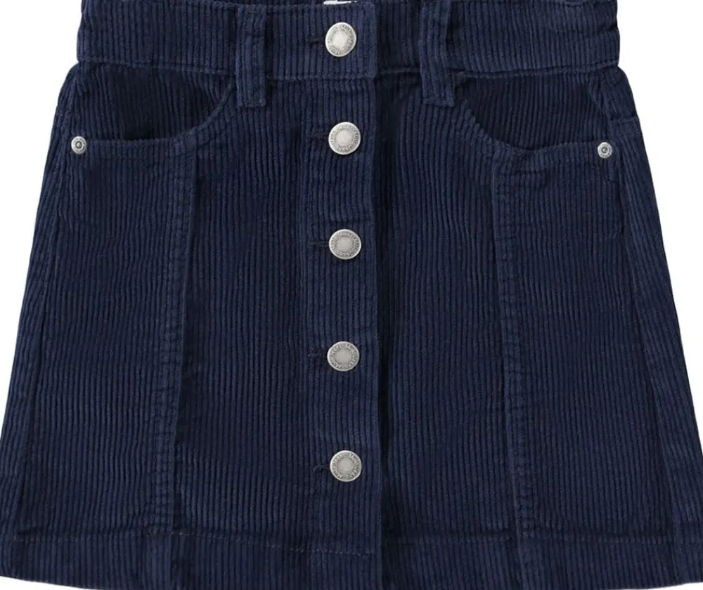 Denne nederdel i bomuldsfløjl fra Molo har knapper som lukning og når til midt på låret. Nederdelen har en talje med bæltestropper, forlommer og detaljerede syninger fra lommerne og ned.