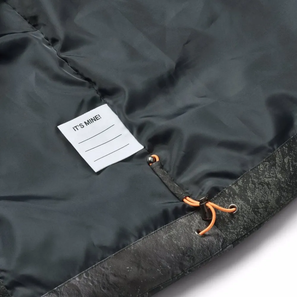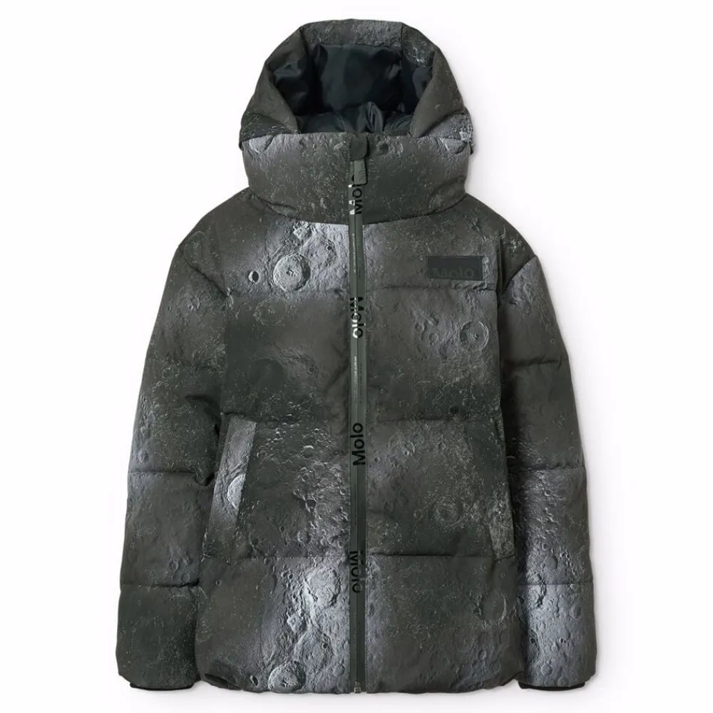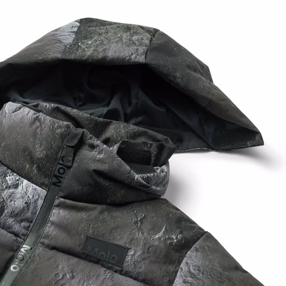 Denne jakke fra Molo er lavet i genanvendt polyester og har et print af snowboardere i alperne. Jakken har en praktisk lynlåslukning, høj krave, aftagelig hætte, frontlommer, en indvendig lomme, ribkant ved håndleddene og en justerbar elastik i bunden. Bagpå er der en stor refleks.
