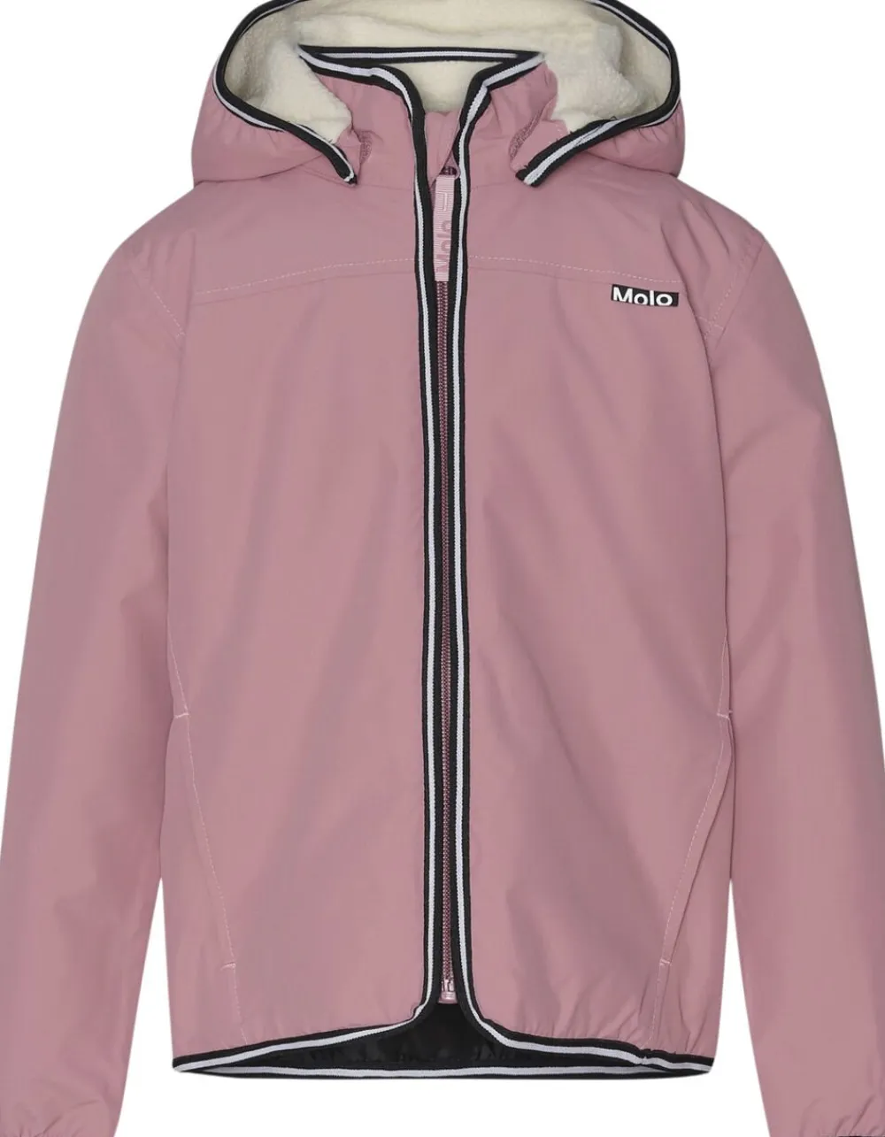 Smart mørkegrøn vind- og vandtæt allround jakke. Jakken har en fleeceforet aftagelig hætte, lommer i siderne, elastik ved ærmerne, og har den velkendte Molo stjerne refleks bagpå samt på det ene ærme, så børnene ses i mørket. Bukserne har desuden foret med en invendig flat padding, som gør dem bløde og hjælper til at holde på varmen. Ydermateriale, for, samt inderstof er fremstillet af delvist genanvendt polyester fra brugte plastikflasker og andet restaffald.Herved bruges der langt færre ressourcer samt en væsentlig mindre udledning af CO2.Miljøvenlig vand- og smudsafvisende coating uden brug af kemikalier som PFOS, PFOA og lign. Vandsøjletryk: 5.000 mm. Åndbarhed: 5.000 g/m2/24t.