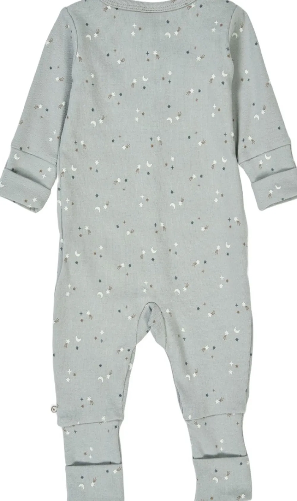 Skøn heldragt i blød blød rib kvalitet. Smukt gennemgående print af stjerner. Heldragten lukkes fortil med tryklåse og har vendbare fødder og hænder. Dragten er perfekt til de små for at sikre at de ligger lunt og trygt. De vendbare fødder og hænder kan foldes efter behov. Denne heldragt er fremstillet fra str. 44-74 og passer derfor til meget små babyer. Fremstillet i blød bomulds-rib med elastan for bedst mulig pasform. (GOTS Organic Certified by Ecocert Greenlife Lic. No. 151714). Produktet er GOTS organic- certificeret, hvilket betyder at bomulden er certificeret økologisk, og at der i alle andre processer som farvning, strikning og syning er taget de strengeste hensyn til miljøet. GOTS er internationalt anerkendt som den førende standard for forarbejdning af tekstiler af økologisk bomuld. Derudover tages der også hensyn til arbejdsforholdene, hos dem der producerer tøjet. Økologisk bomuld 95%, Elastan 5%