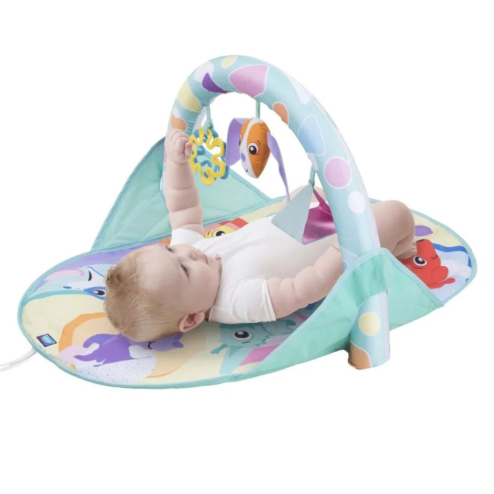 Et dejligt aktivitets tæppe fuld af glade farver og søde rangler. Tæppet kan foldes så barnet også kan få glæde af det på maven. Nemt at at pakke væk og fylder ikke meget på turen. Fra Nyfødt