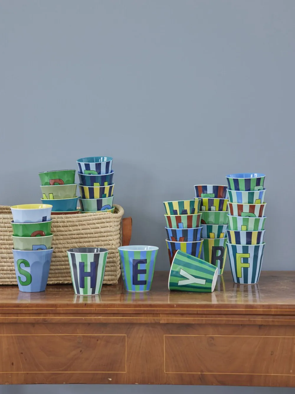 Den skønne melaminkop med bogstaver. Mix og match på kryds og tværs, og skriv lige det budskab, der falder dig ind med de forskellige kopper. Eller gør det enkelt for alle i familien at have deres helt egen personlige kop. Her er bogstavet Z. Koppen er en favorit, og det er der god grund til. Brug den til alt muligt – som drikkekrus, til skriveredskaber eller til lækre smoothies. Kun fantasien sætter grænser. Vær opmærksom på, at produkterne ikke er egnet til mikroovn.