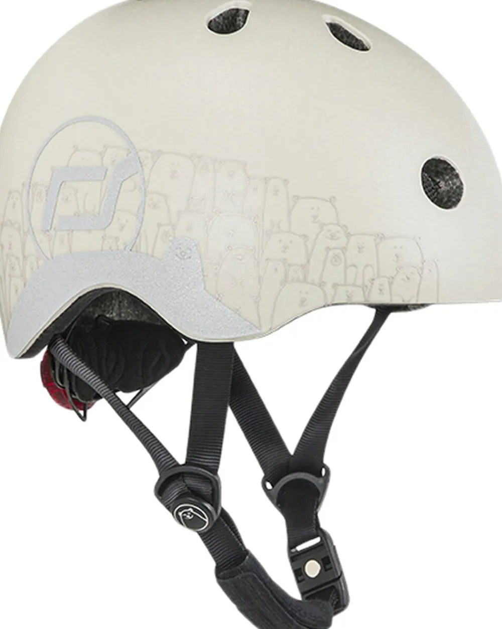 Scoot & Ride reflekterende babyhjelm med et mat soft look på ydersiden, et let materiale på indersiden og fås i 4 forskellige farver. Hver farve har sit eget søde dyreprint lavet af reflekterende materiale for ekstra synlighed og sikkerhed.