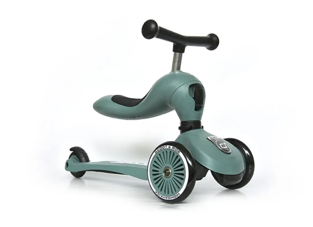 Highwaykick 1 er et 2-i-1 løbehjul, der kan justeres, så det er med sæde til de mindste og i takt med barnet vokser, kan det laves til et ’rigtig’ løbehjul.