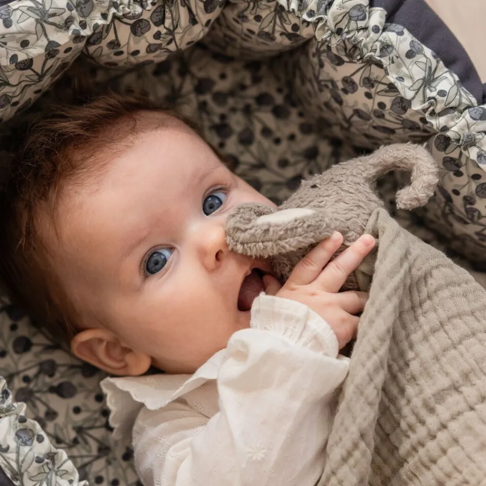 Nussekluden er designet i Danmark og udelukkende fremstillet af certificerede materialer, der kan vaskes ved 30℃. Brug den som gave til babyshower eller som en sød barselsgave til den lille ny.
