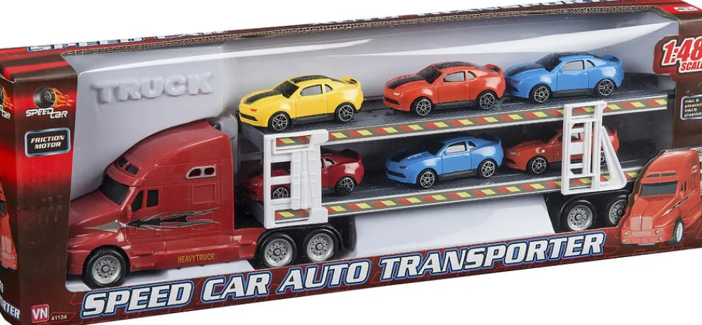 Autotransporter med 6 biler Med friktion I plast Skala 1:48