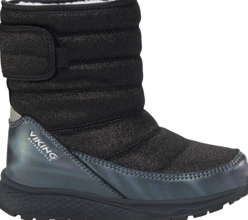 Gør dit barn klar til hverdagens eventyr med en støvle, der er både stilfuld og behagelig. Den iriserende overdel med glimmereffekt har en praktisk slip-on stil, der gør det nemt at få den af og på, og velcrolukningen bagpå holder den godt på plads. Vikings Watershield membran sørger for, at fødderne forbliver tørre under våde forhold, mens et lunt holder kulden væk. En let mellemsål i EVA dæmper hvert skridt på vejen, og en ydersål i gummi giver et godt greb.