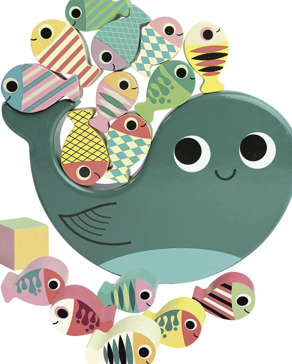 Få fiskene til at balancere på ryggen af den søde sæl. Alle de 18 brikker er fremstillet i træ.